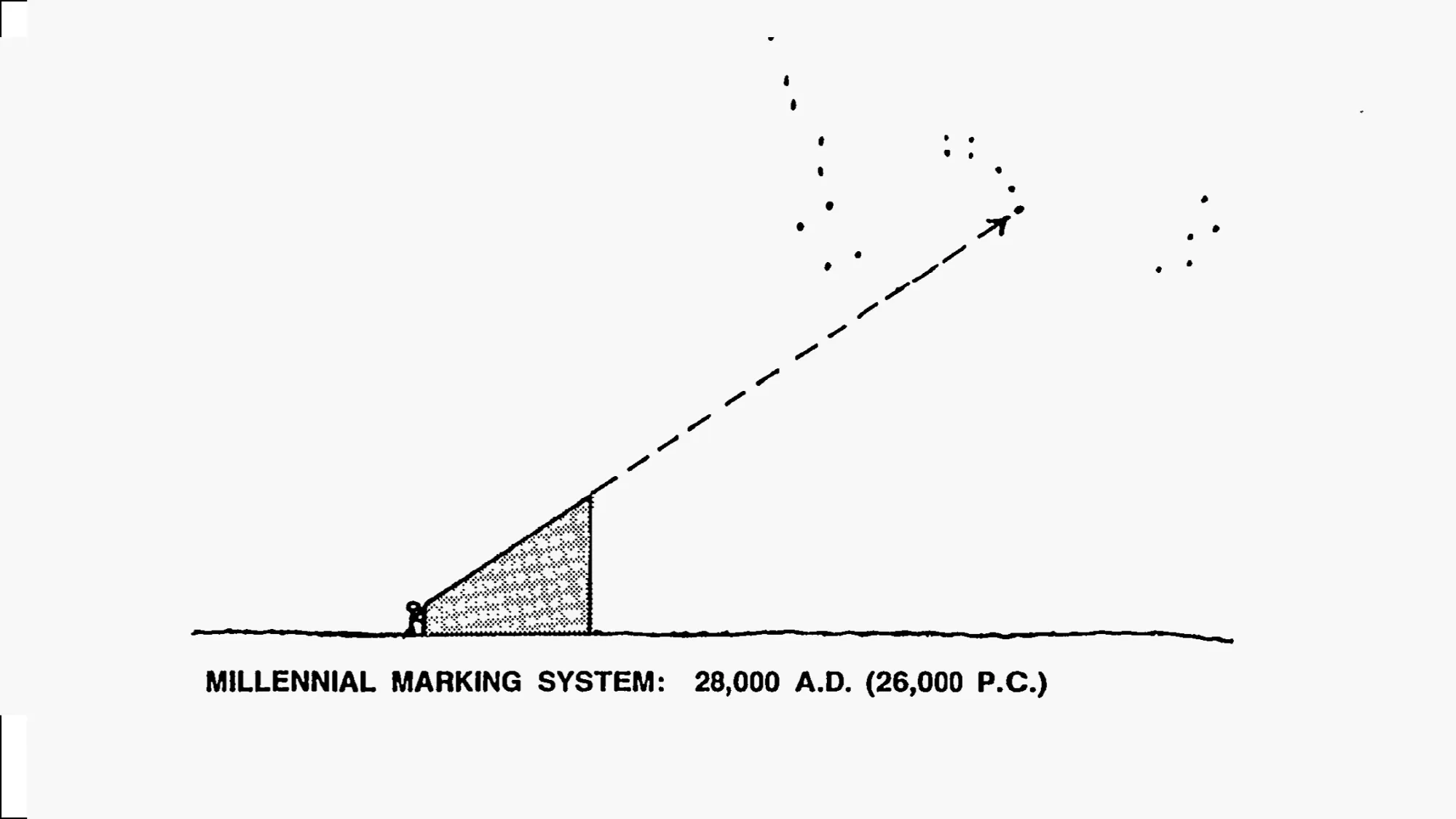 One of the most difficult challenges the teams had to address was how to communicate the passage of extremely long periods of time. The warning was not meant to last years or centuries, but millennia – and to convey that the danger buried at the site would persist long after any familiar language, symbol, or institution had disappeared. To address this problem, both teams turned to astronomy as a reference system capable of exceeding human timescales.