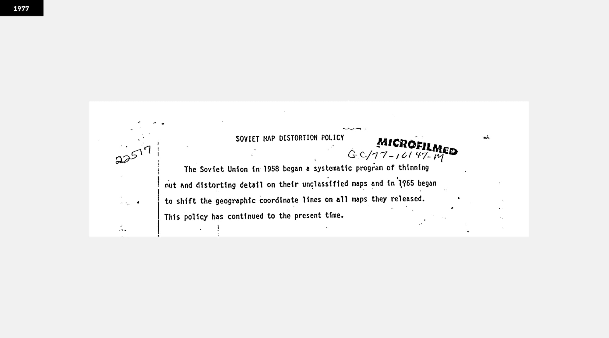 CIA Report called »Soviet Map Distortion Policy« from 1977 (Source: www.cia.gov)