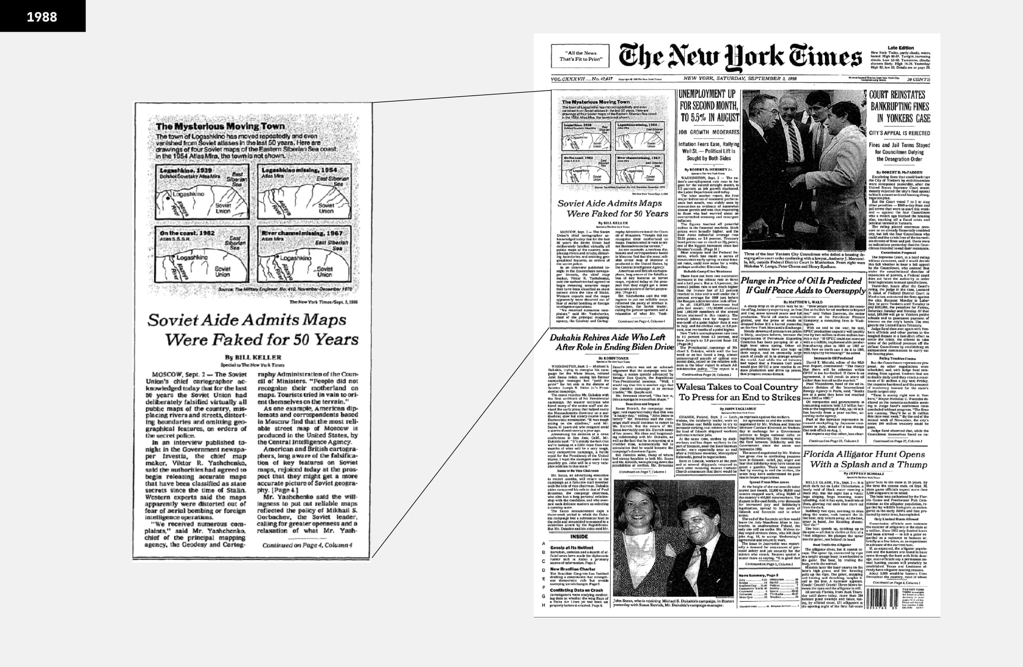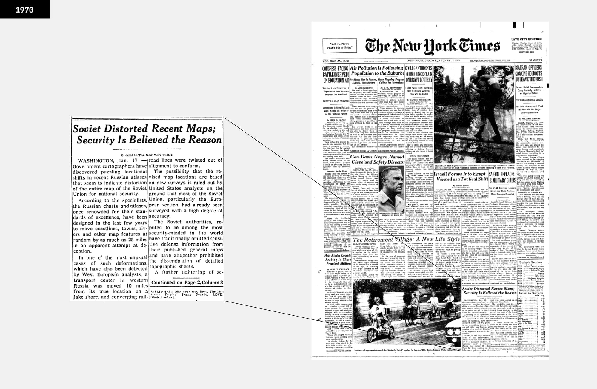 In January 1970 The New York Times ran a short piece noting that Western cartographers had found »inexplicable« errors in Soviet maps. The article’s tone was speculative, but the suspicion was clear: these were not printing mistakes. Eighteen years later, in May 1988, the paper returned to the subject. This time, the source was not a western analyst but the Soviet authorities themselves, who acknowledged, almost offhandedly, that for decades »all maps made for public use have been intentionally altered for reasons of state security.« The admission, printed in Izvestia and quoted in the Times, confirmed what Western intelligence had long believed: The Map Distortion Policy, probably one of the biggest graphical schemes in action, was true.